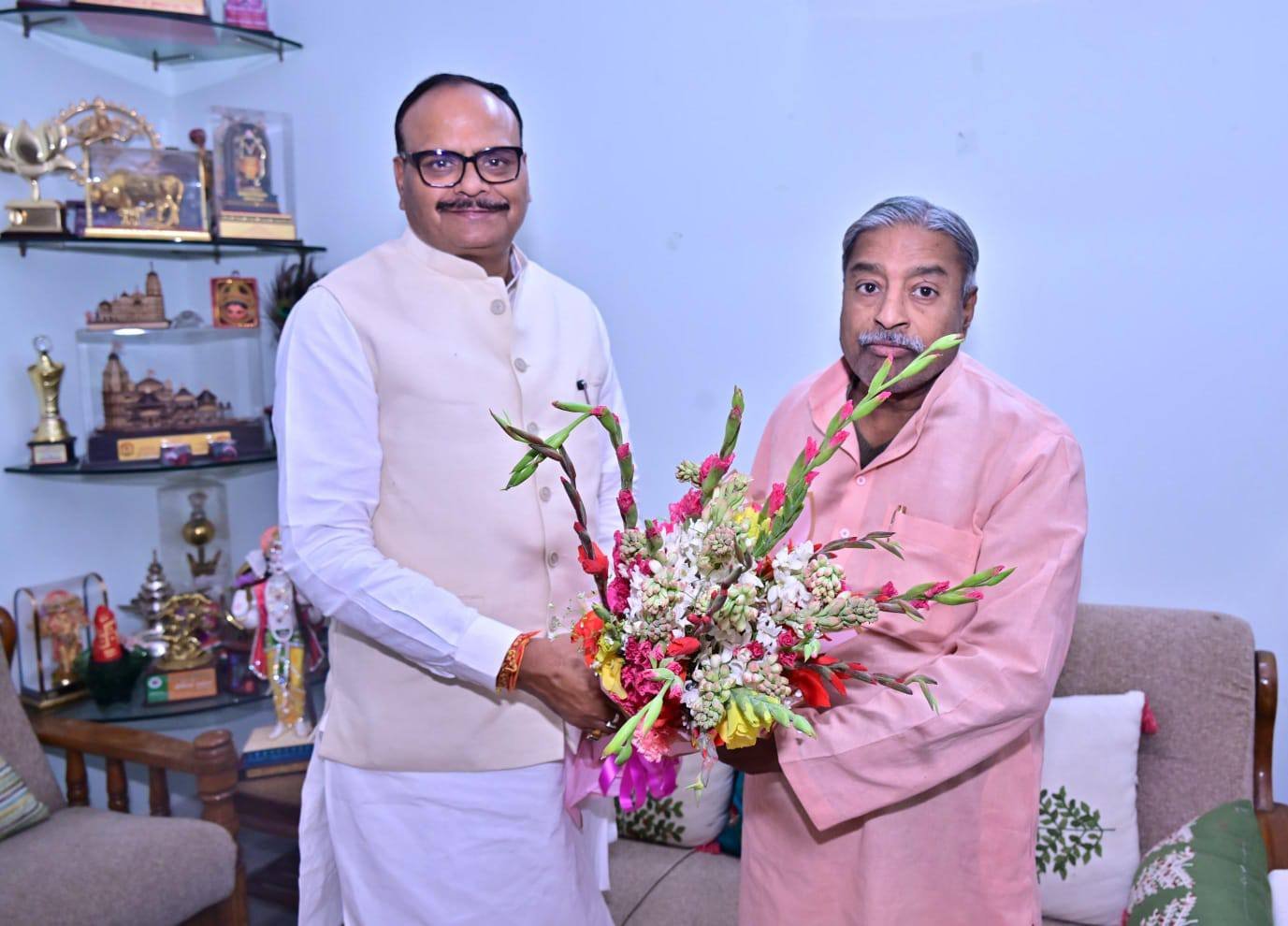 लखनऊ। उत्तर प्रदेश के उपमुख्यमंत्री बृजेश पाठक ने हिंदुत्व की राजनीति के प्रमुख चेहरा रहे वरिष्ठ नेता विनय कटियार से आज लखनऊ में सपत्नीक भेंट कर उनका कुशलक्षेम जाना। इस दौरान उनके परिवार के सदस्यों से भी आत्मीय संवाद किया गया।