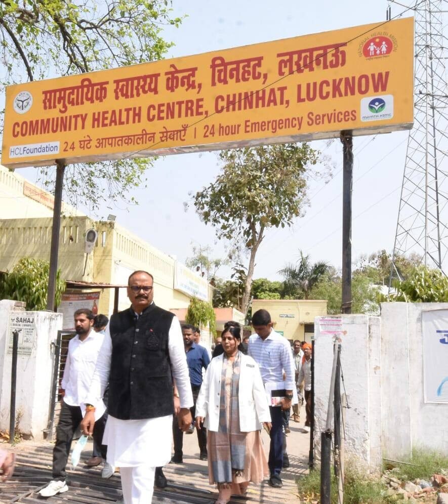 लखनऊ। उत्तर प्रदेश के उप मुख्यमंत्री बृजेश पाठक ने सोमवार को सामुदायिक स्वास्थ्य केंद्र (सीएचसी) चिनहट, लखनऊ का औचक निरीक्षण किया। निरीक्षण के दौरान उन्होंने अस्पताल में उपलब्ध जनस्वास्थ्य सुविधाओं और व्यवस्थाओं की स्थिति का जायजा लिया।
