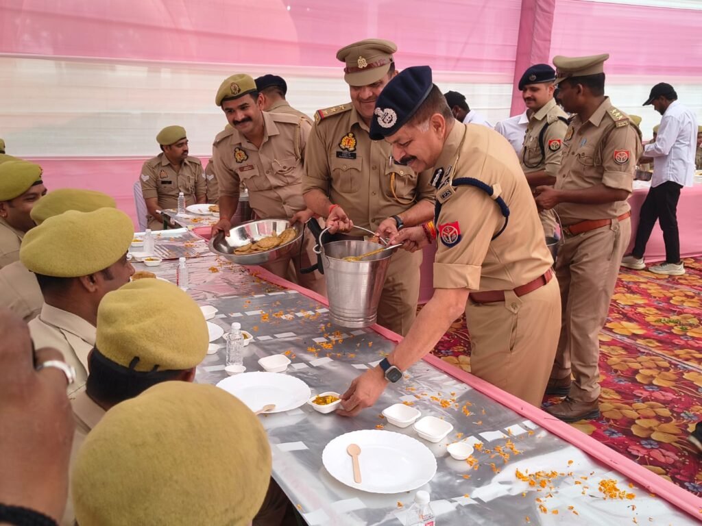 इसी क्रम में एडीजी, डीआईजी रेंज कानपुर एवं एसपी औरैया द्वारा कोतवाली परिसर में नवनिर्मित भोजनालय का फीता काटकर उद्घाटन किया गया। इसके बाद आयोजित “बड़ा खाना” कार्यक्रम में अधिकारियों ने अधीनस्थ पुलिसकर्मियों को अपने हाथों से भोजन परोसकर उनका मनोबल बढ़ाया।