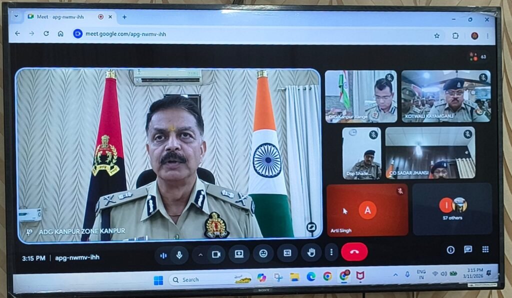 वीडियो कॉन्फ्रेंसिंग में पुलिस महानिरीक्षक झांसी परिक्षेत्र आकाश कुलहरि, पुलिस उपमहानिरीक्षक कानपुर परिक्षेत्र हरीश चन्दर सहित जोन के सभी जनपद प्रभारी अधिकारी भी मौजूद रहे।