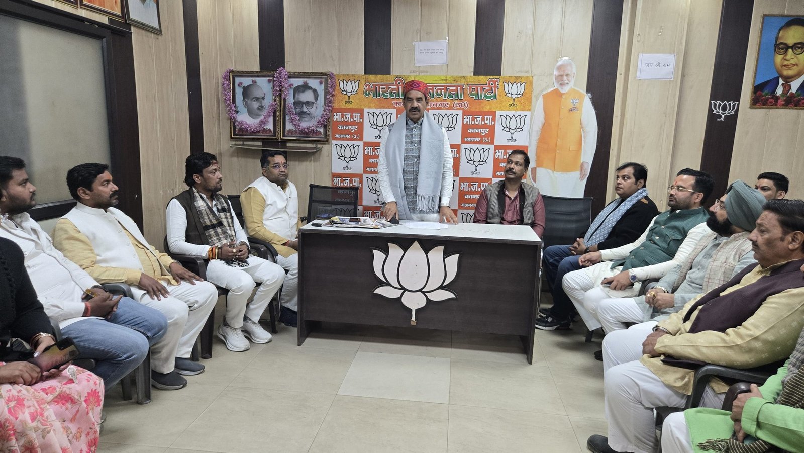 कानपुर नगर। भारतीय जनता पार्टी कानपुर उत्तर के जिला कार्यालय में जिला अध्यक्ष अनिल दीक्षित की अध्यक्षता में एसआईआर अभियान, अटल स्मृति शताब्दी वर्ष एवं वीर बाल दिवस कार्यक्रमों को लेकर एक अति महत्वपूर्ण बैठक आयोजित की गई। बैठक में इन अभियानों के संयोजक व सहसंयोजक उपस्थित रहे।