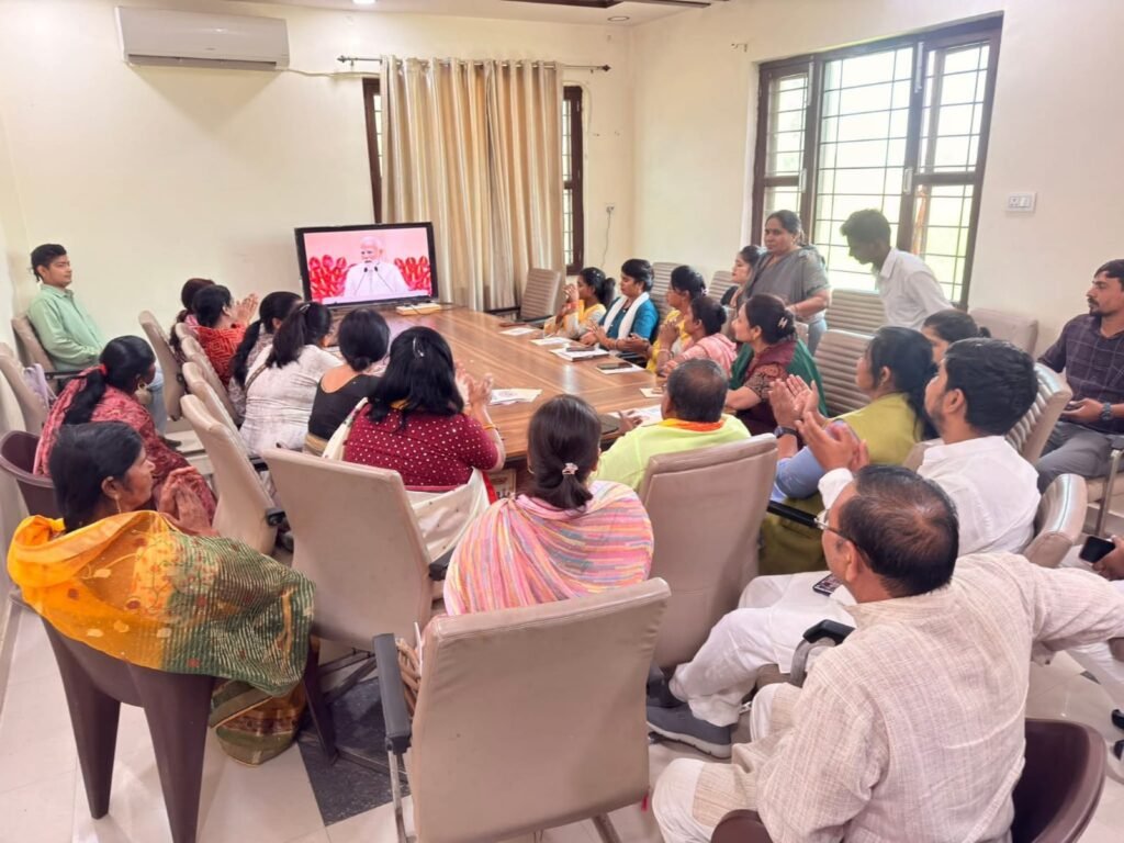 कार्यक्रम के दौरान जिलाध्यक्ष डॉ. सर्वेश कठेरिया ने उपस्थित मातृशक्ति के साथ प्रधानमंत्री नरेंद्र मोदी के लाइव प्रसारण को सुना तथा उनके संदेशों पर विस्तार से चर्चा की।
