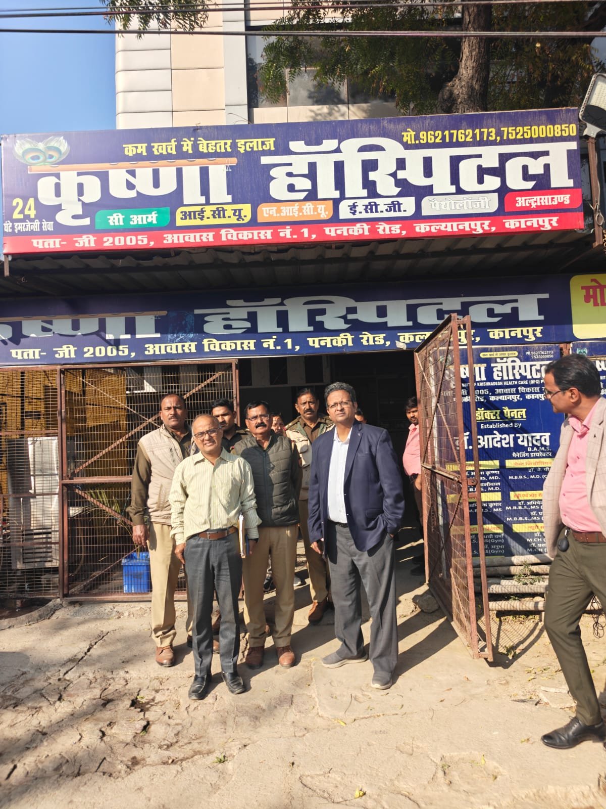 जांच के दौरान रुद्र मेडिकल सेंटर को सील किया गया, जबकि एमपी हॉस्पिटल और कानपुर हेल्थ केयर सेंटर की ओटी व एचडीयू सील की गई। इसके अलावा न्यू अभिनव हॉस्पिटल, महादेव हॉस्पिटल, गांधी हॉस्पिटल और माधव हॉस्पिटल की ओटी भी सील कर दी गई।