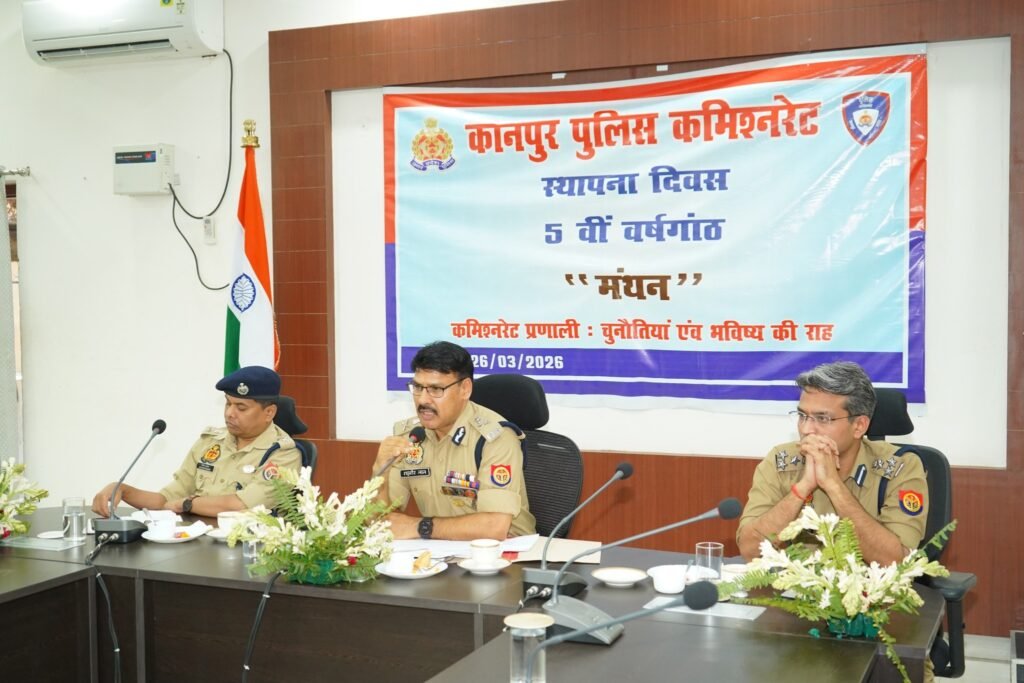 कानपुर नगर। पुलिस कमिश्नरेट प्रणाली लागू होने के 5 वर्ष पूर्ण होने के अवसर पर 26 मार्च 2026 को पुलिस कार्यालय सभागार में “मंथन” नामक विशेष कार्यक्रम का आयोजन किया गया। कार्यक्रम की अध्यक्षता पुलिस आयुक्त रघुबीर लाल ने की।