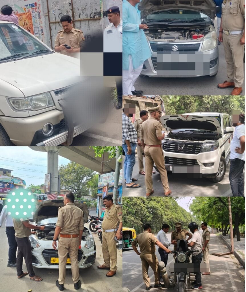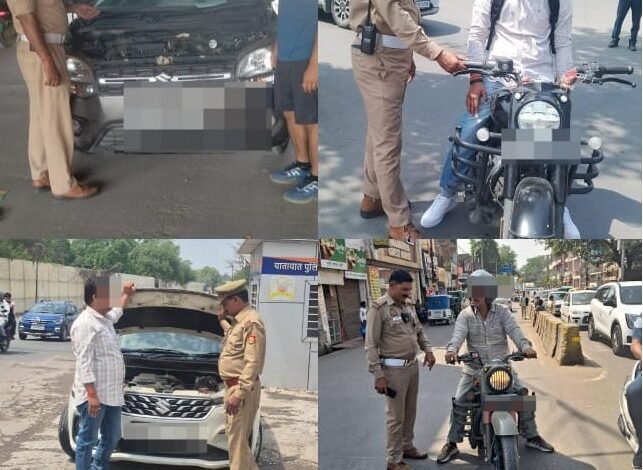 कानपुर में ट्रैफिक पुलिस का चेकिंग अभियान, मॉडिफाइड साइलेंसर व प्रेशर हॉर्न वाले वाहनों पर कार्रवाई