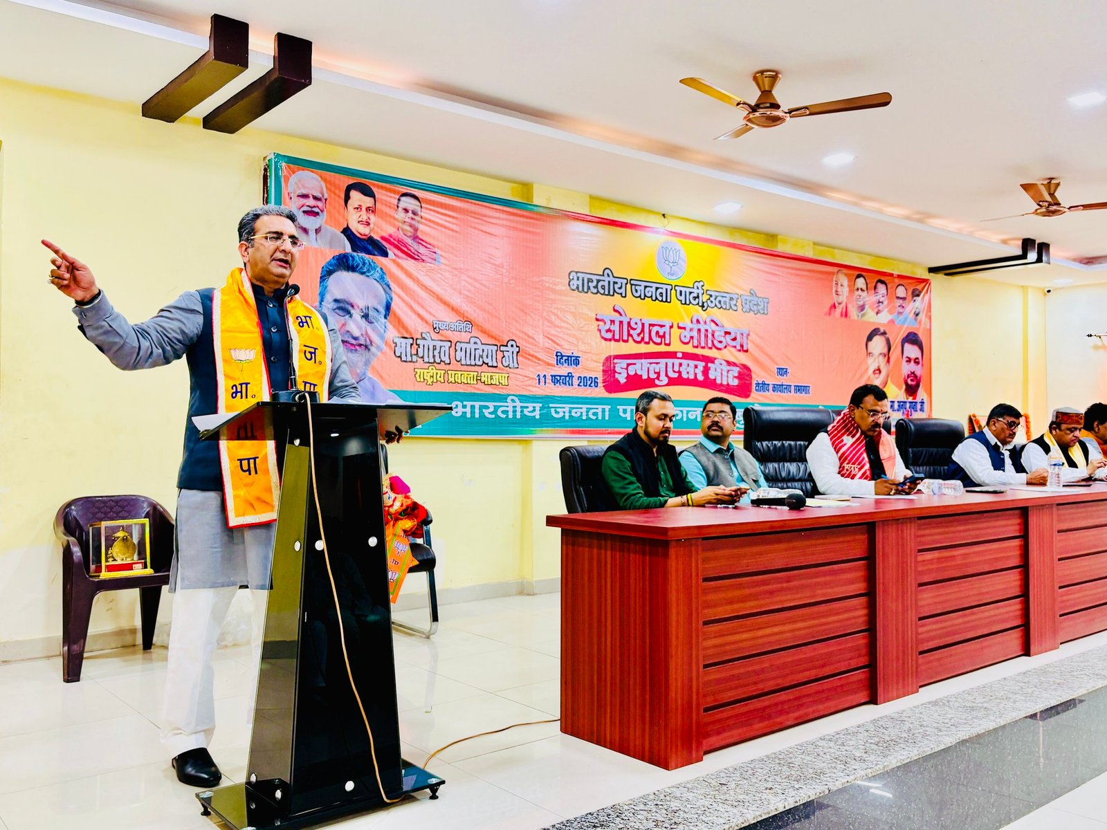 कार्यक्रम की अध्यक्षता क्षेत्रीय अध्यक्ष प्रकाश पाल ने की। अपने संबोधन में उन्होंने सोशल मीडिया की भूमिका को महत्वपूर्ण बताते हुए कहा कि डिजिटल प्लेटफॉर्म के माध्यम से सरकार की नीतियों और योजनाओं की सही जानकारी आमजन तक पहुंचाना समय की आवश्यकता है।