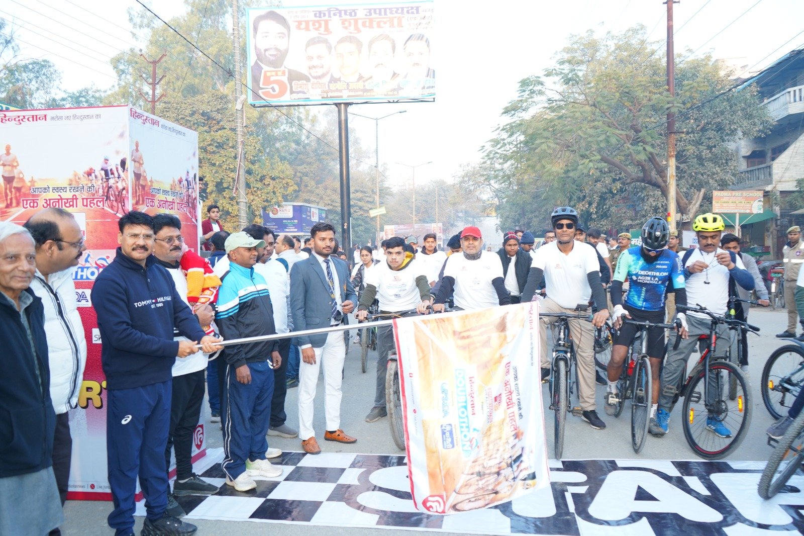कानपुर नगर। दिनांक 14 फरवरी 2026 को कानपुर नगर में ‘हिन्दुस्तान डबलोथॉन’ के तहत दौड़ और साइक्लिंग कार्यक्रम का आयोजन किया गया। कार्यक्रम की शुरुआत किदवई नगर स्थित संजय वन से हुई, जिसका शुभारंभ पुलिस आयुक्त रघुबीर लाल ने हरी झंडी दिखाकर किया।