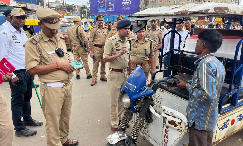 कानपुर शहर में ई-रिक्शा पॉलिसी का कड़ा पालन: पुलिस ने किया प्रमुख चौराहों का निरीक्षण