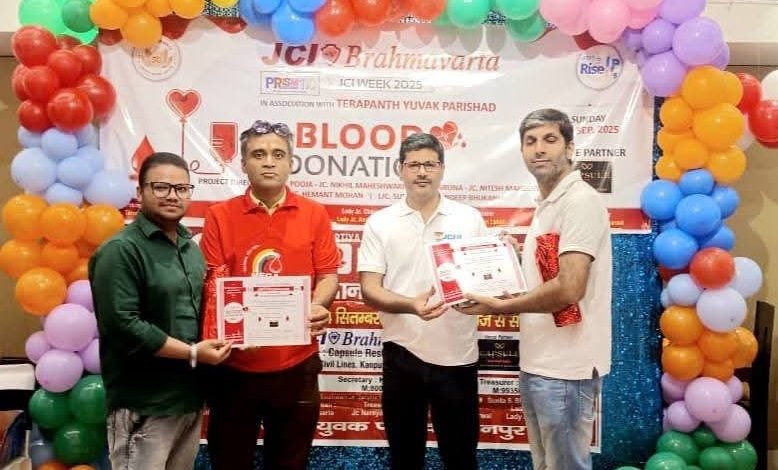 कानपुर नगर। जेसीआई वीक 2025 के अंतर्गत जेसीआई ब्रह्मावर्ता ने 14 सितम्बर 2025 को सिविल लाइंस स्थित कैप्सूल रेस्टोरेंट में एक भव्य रक्तदान शिविर का आयोजन किया। यह शिविर प्रातः 10 बजे आरम्भ हुआ और पूरे दिन समाजसेवियों एवं नागरिकों की सक्रिय भागीदारी देखने को मिली।