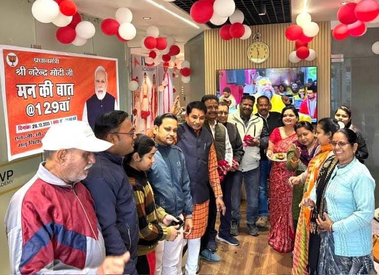 इस अवसर पर व्यापार प्रकोष्ठ के क्षेत्रीय सहसंयोजक, मंडल महामंत्री, वार्ड अध्यक्ष, बूथ अध्यक्ष सहित विभिन्न एनजीओ के पदाधिकारी और भाजपा कार्यकर्ता मौजूद रहे। कार्यक्रम के दौरान उपस्थित लोगों ने ‘मन की बात’ को ध्यानपूर्वक सुना और इसमें उठाए गए मुद्दों पर अपने विचार साझा किए।