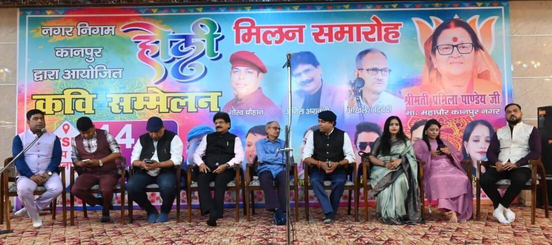 कानपुर नगर। स्वरूपनगर स्थित टीएसएच में नगर निगम की ओर से कवि सम्मेलन एवं होली मिलन समारोह का आयोजन किया गया, जिसमें हास्य, व्यंग्य और राष्ट्रभक्ति से ओत-प्रोत कविताओं ने श्रोताओं का भरपूर मनोरंजन किया। कार्यक्रम का शुभारंभ महापौर प्रमिला पांडेय, कवि हेमंत पांडेय सहित अन्य अतिथियों ने दीप प्रज्वलित कर किया।
