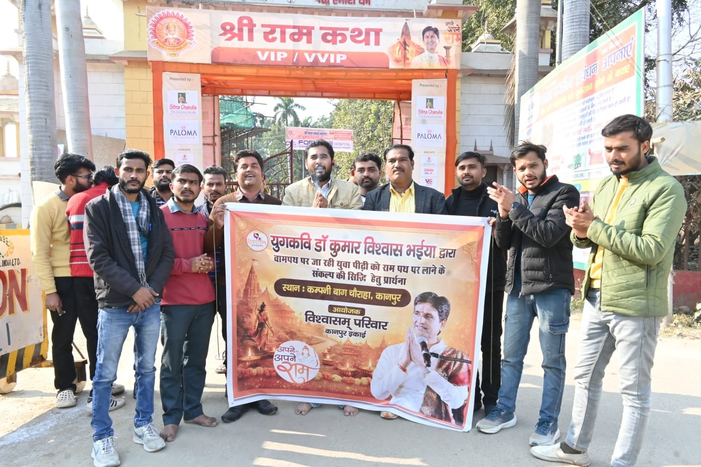 कानपुर नगर। युगकवि एवं रामकथा मर्मज्ञ डॉ. कुमार विश्वास द्वारा वामपथ की ओर जा रही युवा पीढ़ी को रामपथ पर लाने के संकल्प की सिद्धि हेतु 25 दिसंबर 2025 को विश्वासम परिवार, कानपुर इकाई द्वारा विशेष प्रार्थना सभा का आयोजन किया गया। यह कार्यक्रम कम्पनी बाग चौराहा स्थित चंद्रशेखर आज़ाद विश्वविद्यालय के समीप श्रीराम भक्त हनुमान जी के मंदिर में आयोजित हुआ।