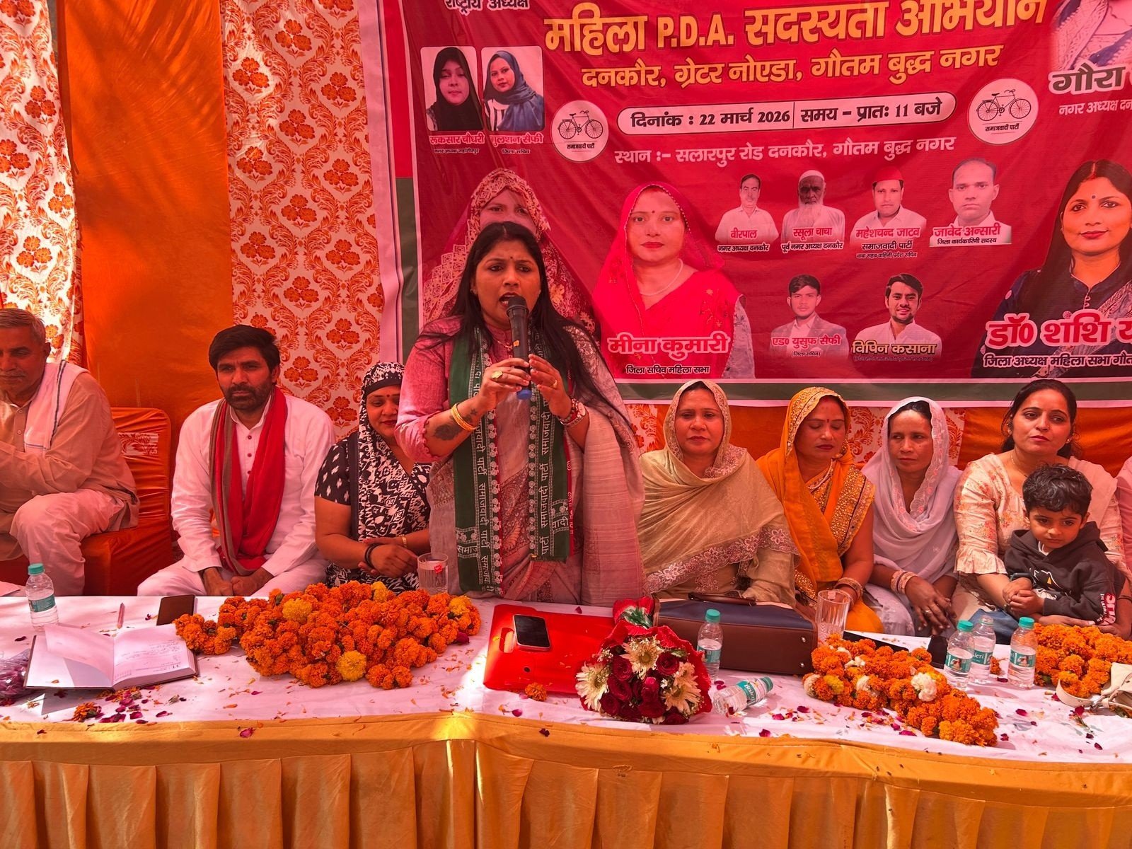 ग्रेटर नॉएडा (दनकौर)। दनकौर के सलारपुर रोड स्थित परिसर में समाजवादी पार्टी महिला सभा की एक विशाल बैठक आयोजित की गई, जिसमें बड़ी संख्या में महिला कार्यकर्ताओं ने भाग लिया। बैठक का मुख्य उद्देश्य संगठन को जमीनी स्तर पर मजबूत करना, सदस्यता अभियान को गति देना और 29 मार्च को दादरी में होने वाली अखिलेश यादव की महारैली को ऐतिहासिक बनाना रहा।
