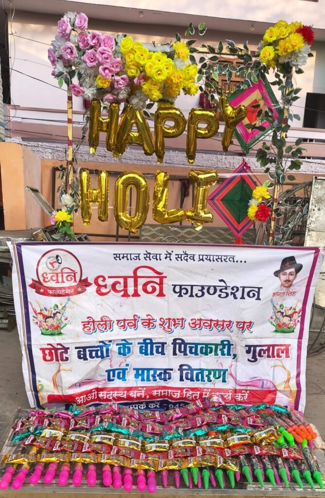 ध्वनि फाउंडेशन ने जरूरतमंद बच्चों को बांटी पिचकारी, गुलाल और मास्क