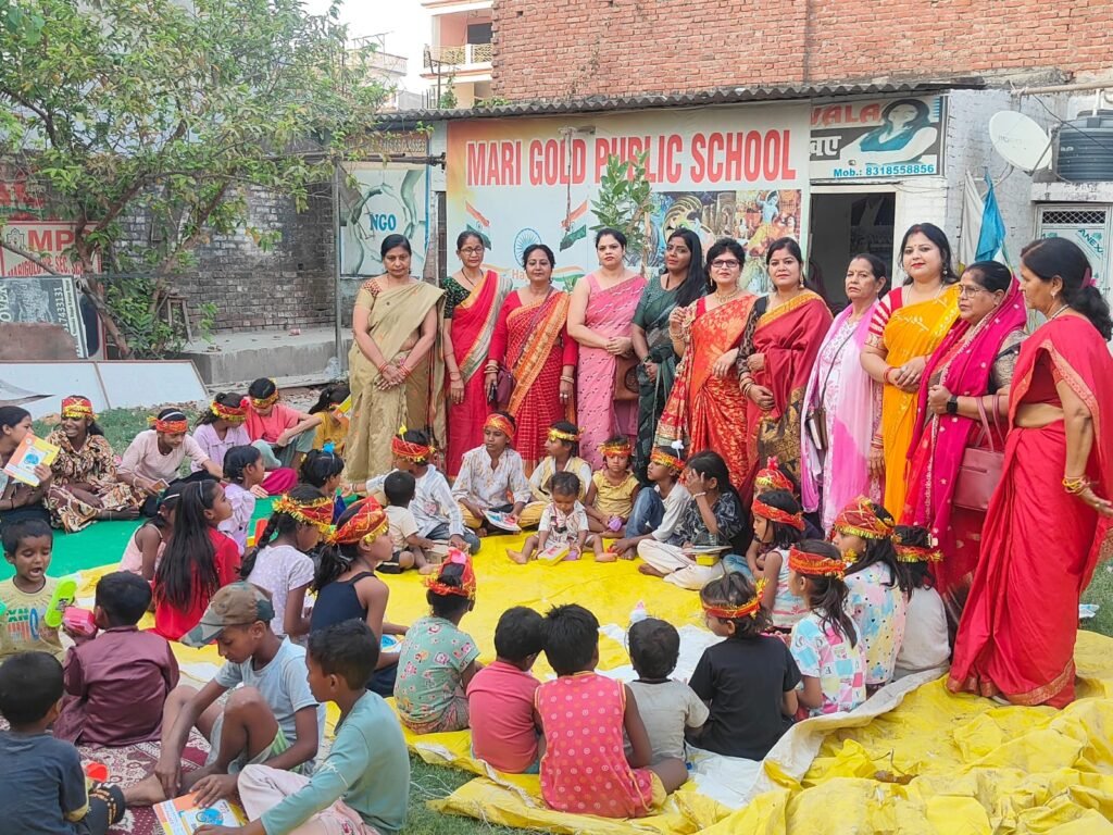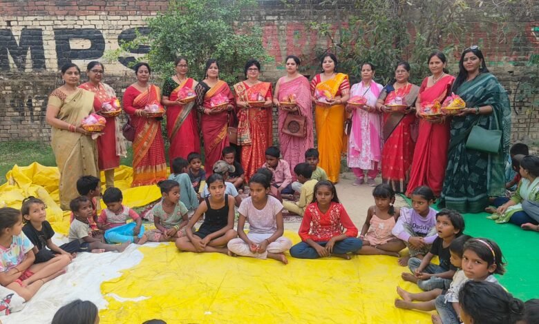 बस्ती की कन्याओं का सम्मान, शिक्षण सामग्री व भोजन का वितरण