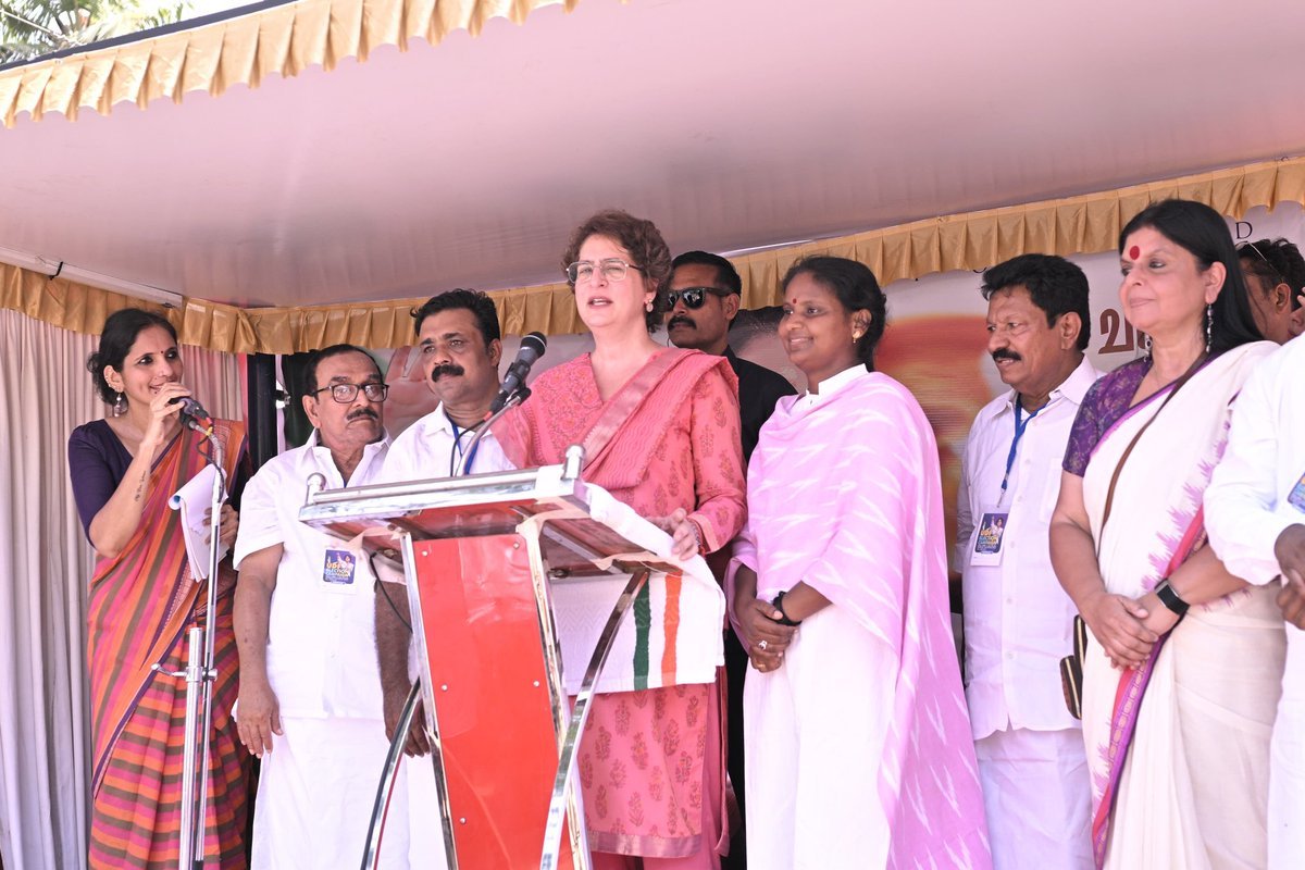 केरल के कोल्लम में चुनाव प्रचार के दौरान प्रियंका गांधी ने कहा कि सरकार की नीति अपने नागरिकों के पक्ष में नहीं है। उन्होंने आरोप लगाया कि केंद्र सरकार भारत के हितों की बजाय अन्य देशों के प्रभाव में काम कर रही है और “भारत के लिए खड़े नहीं होने” का दावा किया।