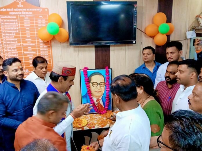 कानपुर नगर। संविधान शिल्पी डॉ. भीमराव अंबेडकर की जयंती के अवसर पर भारतीय जनता पार्टी कानपुर उत्तर द्वारा जिला कार्यालय, नवीन मार्केट में भव्य कार्यक्रम का आयोजन किया गया। कार्यक्रम का नेतृत्व जिला अध्यक्ष अनिल दीक्षित ने किया।