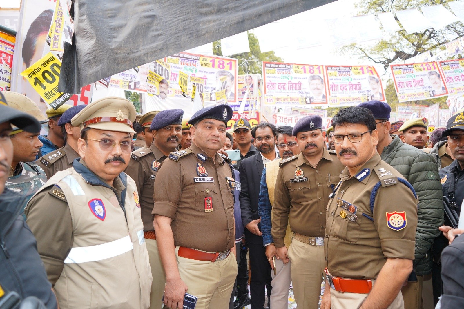 कानपुर नगर। दिनांक 28 जनवरी 2026 को बार काउंसिल चुनाव को शांतिपूर्ण, निष्पक्ष एवं सुव्यवस्थित ढंग से सम्पन्न कराने के उद्देश्य से पुलिस आयुक्त श्री रघुबीर लाल तथा संयुक्त पुलिस आयुक्त (मुख्यालय/अपराध) श्री विनोद कुमार सिंह द्वारा मतदान स्थल एवं उसके आसपास की सुरक्षा व्यवस्था, यातायात संचालन एवं कानून-व्यवस्था की स्थिति का स्थलीय निरीक्षण किया गया।