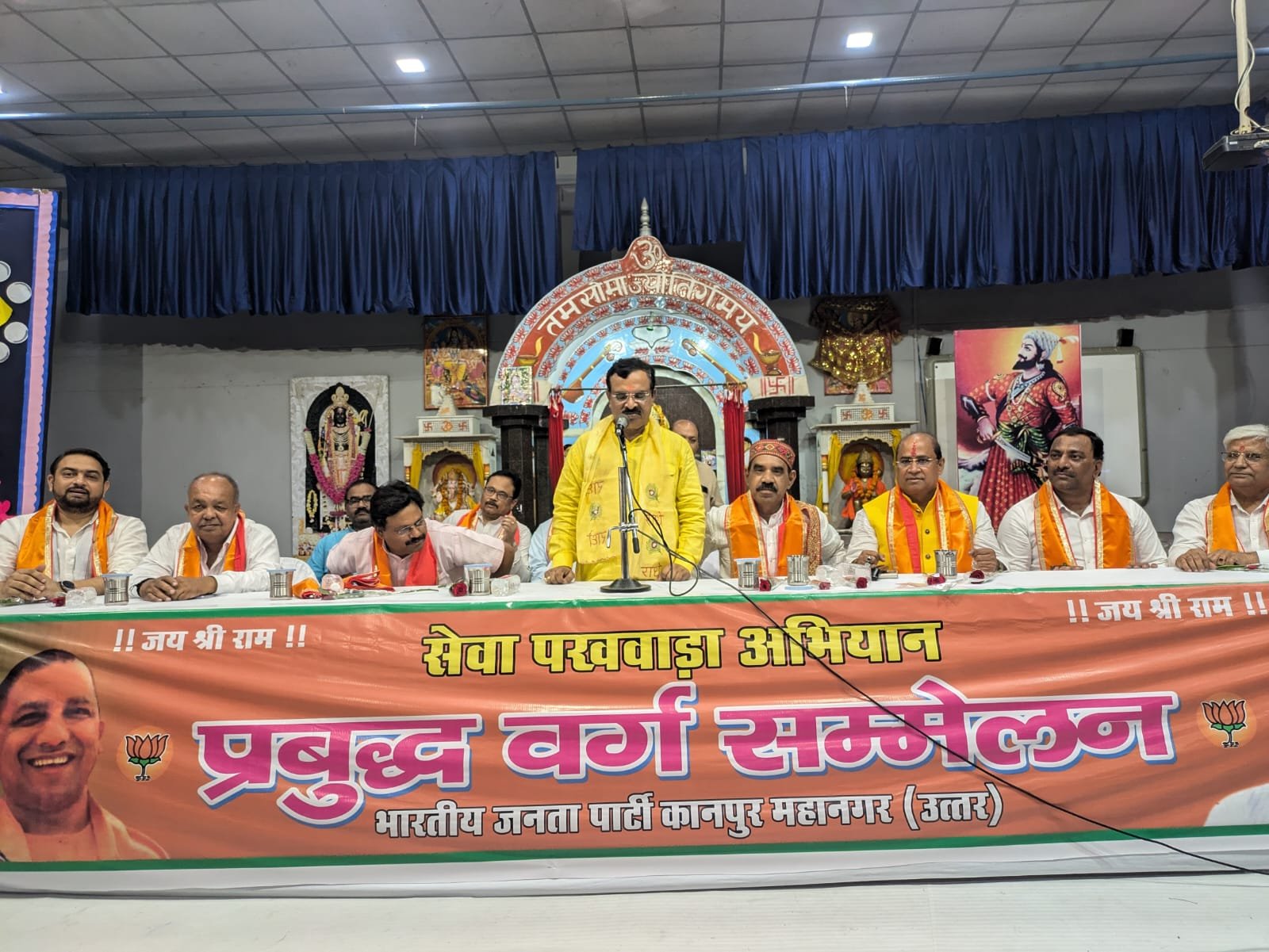 कानपुर नगर। प्रधानमंत्री नरेंद्र मोदी के जन्मदिवस से शुरू हुए सेवा पखवाड़ा कार्यक्रम के अंतर्गत आज बीएनएसडी शिक्षा निकेतन में भव्य प्रबुद्ध वर्ग सम्मेलन का आयोजन किया गया। सम्मेलन की अध्यक्षता जिला अध्यक्ष अनिल दीक्षित ने की, जबकि कार्यक्रम का शुभारंभ क्षेत्रीय अध्यक्ष प्रकाश पाल ने दीप प्रज्वलन और महापुरुषों को पुष्पांजलि अर्पित कर किया।