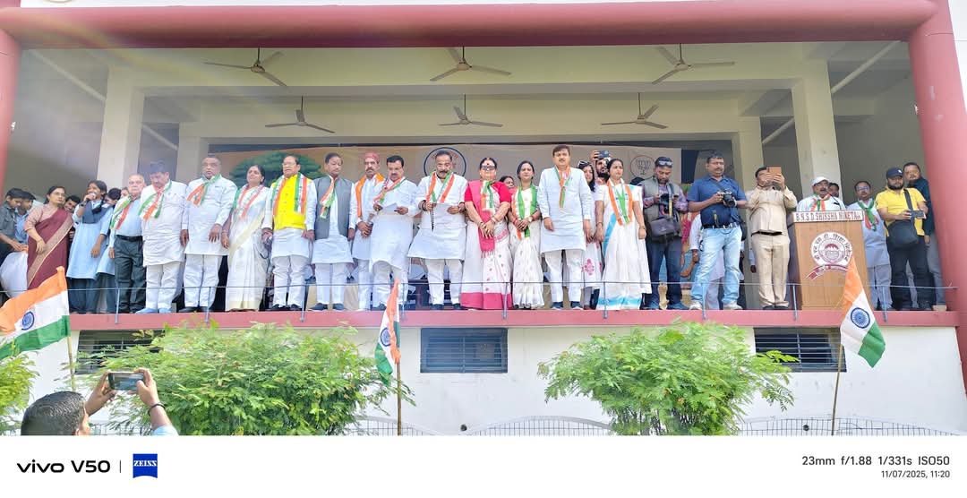 प्रातः 10 बजे से ही शहर की विभिन्न विधानसभाओं से सैकड़ों भाजपा कार्यकर्ता तिरंगा झंडा हाथों में लिए “भारत माता की जय” और “वंदे मातरम” के उद्घोष करते हुए टोली बनाकर विद्यालय परिसर में पहुंचने लगे। थोड़ी ही देर में पूरा मैदान कार्यकर्ताओं और मातृशक्ति से खचाखच भर गया। पुरुष कार्यकर्ता सफेद वस्त्रों में और मातृशक्ति पारंपरिक साड़ियों में सुसज्जित होकर कार्यक्रम में सम्मिलित हुईं।