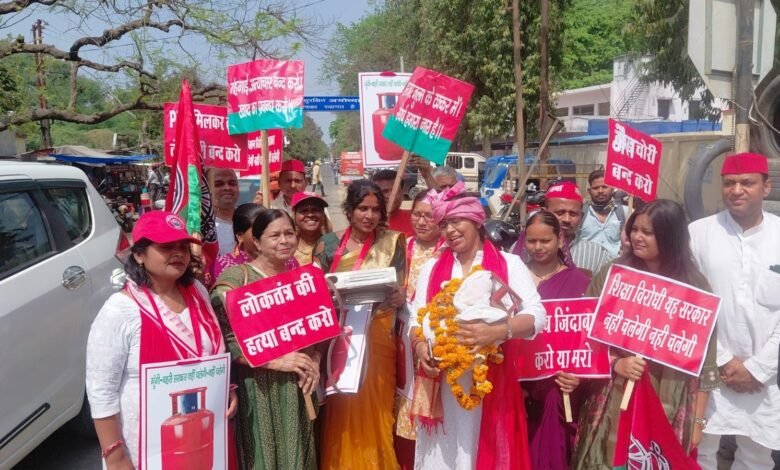 महंगाई और गैस सिलेंडर की किल्लत के खिलाफ समाजवादी महिला सभा का प्रदर्शन