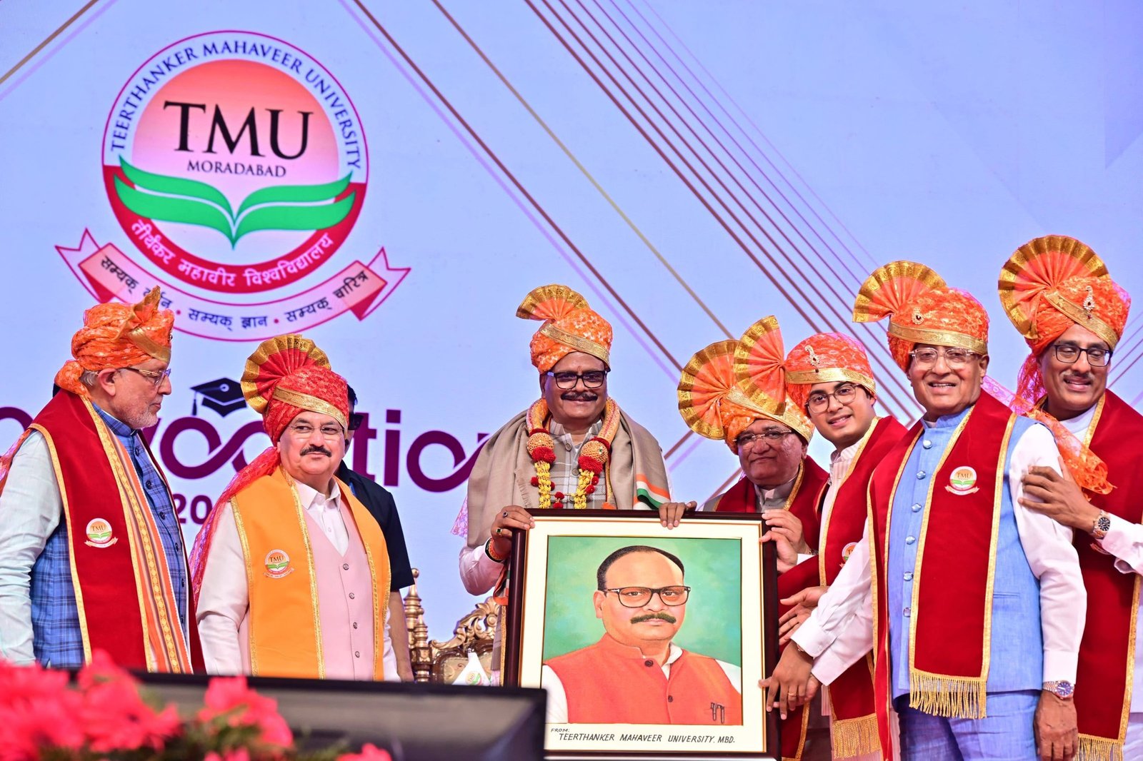मुरादाबाद। जनपद मुरादाबाद स्थित तीर्थंकर महावीर विश्वविद्यालय में आयोजित ‘दीक्षांत समारोह 2026’ में उत्तर प्रदेश के उप मुख्यमंत्री बृजेश पाठक ने भाग लेकर विद्यार्थियों को संबोधित किया। इस अवसर पर कार्यक्रम में पूर्व भाजपा राष्ट्रीय अध्यक्ष एवं केंद्रीय स्वास्थ्य मंत्री जे.पी. नड्डा की गरिमामयी उपस्थिति रही।