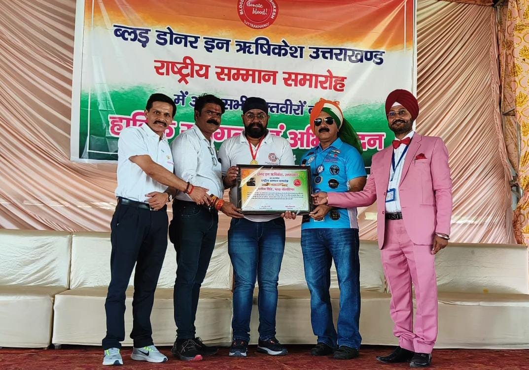 सम्मान समाजहित में सेवा कर रहे व रक्तदान के क्षेत्र के शतकवीर भूपेंद्र दवे,लुधियाना के गोपाल पूर्वा व करनाल से डॉक्टर सुरेश सैनी के हाथों सर्व फार ह्यूमैनिटी को राष्ट्रीय सम्मान से सम्मानित किया गया। सम्मान लेने सर्व फार ह्यूमैनिटी टीम से गुरमीत सिंह पहुचे। जहाँ शतकवीरो द्वारा गुरमीत सिंह का उत्साह वर्धन किया गया। इस मौके में ब्लड डोनर ऋषिकेष के रोहित बिजलावन, राजस्थान के सीकर से अंशु,यमुनानगर से सागर पंडित, मध्यप्रदेश से वैशाली पंड्या,रक्तक्रान्ति से महेंद्र उपस्थित रहे।