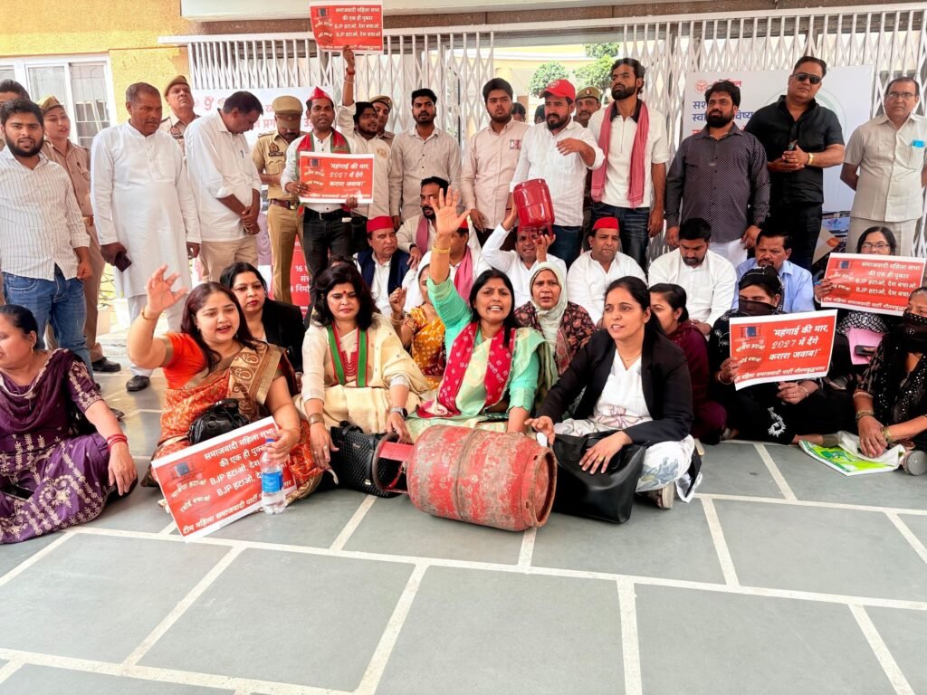 रसोई गैस संकट को लेकर समाजवादी महिला सभा का प्रदर्शन, राष्ट्रपति के नाम सौंपा ज्ञापन