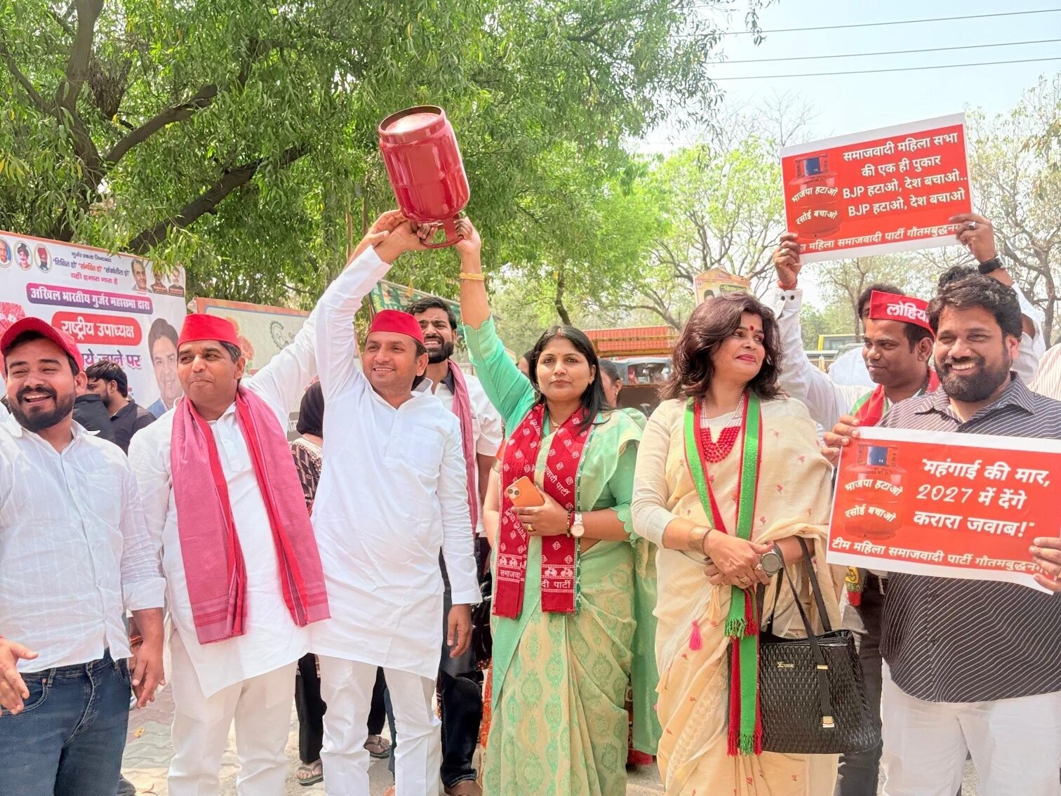 नोएडा। ग्रेटर नोएडा में रसोई गैस सिलेंडर की कथित किल्लत को लेकर समाजवादी पार्टी की महिला इकाई, समाजवादी महिला सभा ने जोरदार प्रदर्शन किया। महिला सभा की जिलाध्यक्ष डॉ. शशि यादव के नेतृत्व में कार्यकर्ताओं ने सूरजपुर स्थित जिला कलेक्ट्रेट पर विरोध दर्ज कराते हुए महामहिम राष्ट्रपति के नाम जिलाधिकारी को ज्ञापन सौंपा।