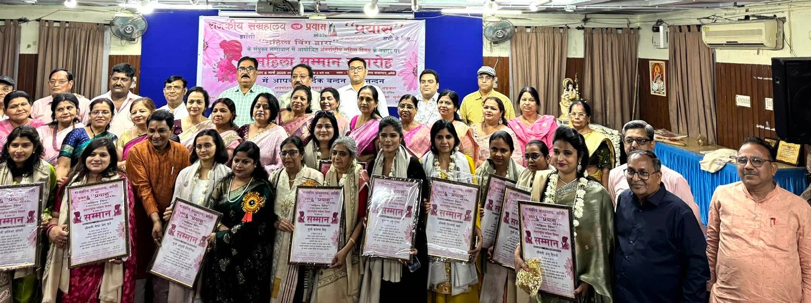 झांसी। अंतर्राष्ट्रीय महिला दिवस के अवसर पर सामाजिक-सांस्कृतिक संस्था “प्रयास : सभी के लिए” और राजकीय संग्रहालय झांसी के संयुक्त तत्वावधान में “नारी शक्ति को नमन” कार्यक्रम का आयोजन किया गया। कार्यक्रम में समाज के विभिन्न क्षेत्रों में उल्लेखनीय कार्य करने वाली प्रेरक महिलाओं को सम्मानित किया गया।