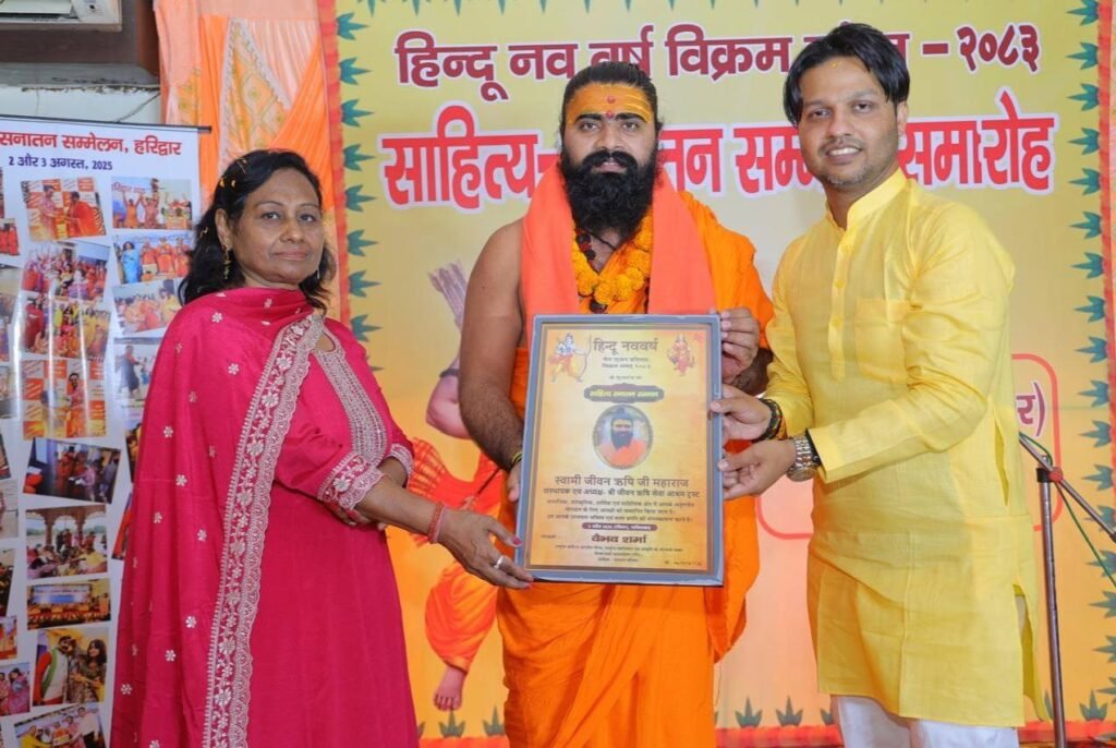 कार्यक्रम के दौरान उन्हें उनके साहित्यिक योगदान के लिए “साहित्य-सनातन सम्मान” से सम्मानित किया गया।