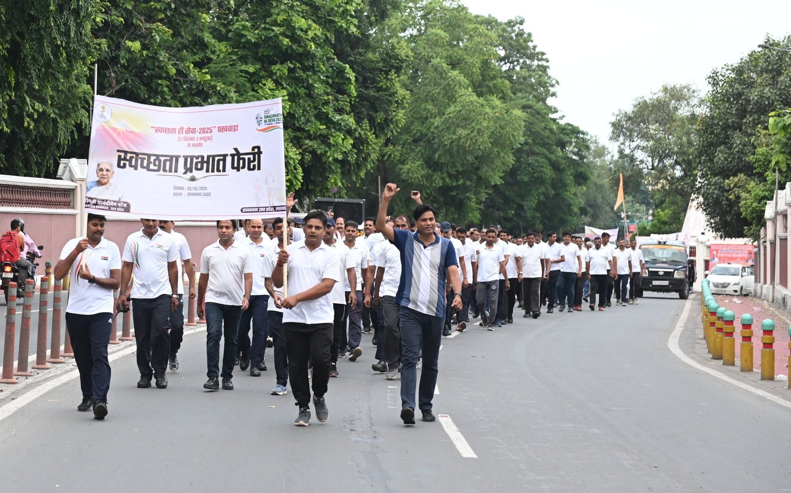 प्रभात फेरी के दौरान “राजभवन का यह संदेश – स्वच्छ हो भारत देश”, “नशा मुक्त हो भारत देश”, “स्वच्छता अपनाओ”, “भारत माता की जय” और “वंदे मातरम्” जैसे प्रेरणादायी नारे गूंजते रहे। वहीं बापू के प्रिय भजन वैष्णव जन तो और रघुपति राघव ने वातावरण को देशभक्ति और स्वच्छता के संकल्प से सराबोर कर दिया।