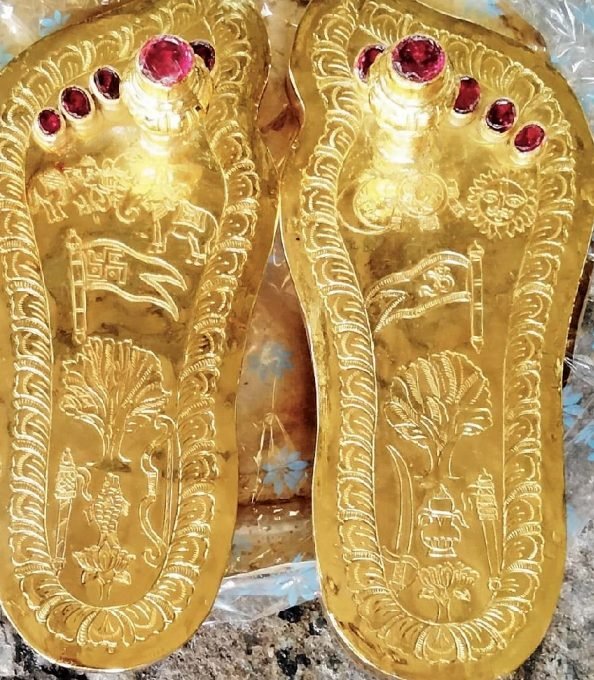 बता दें कि ये ये चरण पादुकाएं एक किलो सोने और सात किलो चांदी से बनाई गई हैं. इनमें बेशकीमती रत्नों का उपयोग भी किया गया है. अहमदाबाद पहुंची पादुकाओं को बालाजी मंदिर के ट्रस्टी के. सुब्बारायुडु अपने सिर पर रखकर मंदिर के अंदर ले गए और श्री बालाजी मंदिर के पंडितों ने इनकी विशेष पूजा की. जिसके बाद कई भक्तों ने श्रीराम पादुकाओं के दर्शन किए. कुछ भक्तों को इन्हें अपने सिर पर धारण करने का सौभाग्य भी प्राप्त हुआ।