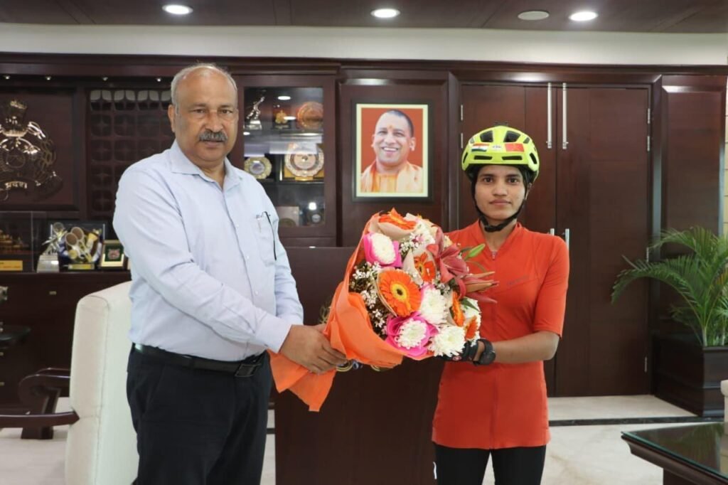 लखनऊ। राष्ट्रीय साइक्लिस्ट, पर्वतारोही और प्रेरक खिलाड़ी आशा मालवीय ने आज उत्तर प्रदेश के पुलिस महानिदेशक राजीव कृष्ण से शिष्टाचार भेंट की। इस दौरान उन्होंने देशभर में की गई अपनी साइक्लिंग यात्राओं के अनुभव साझा किए, जिनका उद्देश्य महिला सशक्तिकरण और राष्ट्रीय भावना को बढ़ावा देना है।