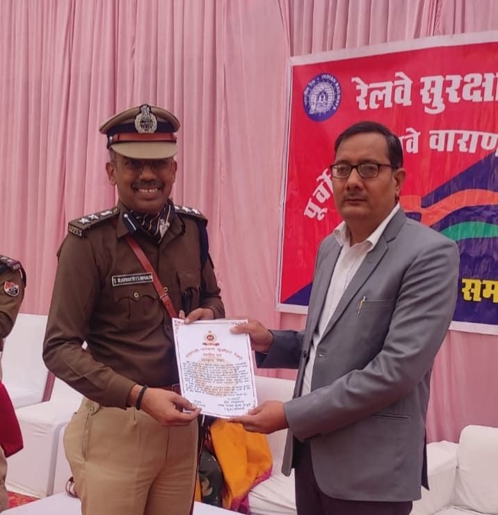 वरिष्ठ मंडल सुरक्षा आयुक्त, रेलवे सुरक्षा बल, वाराणसी मंडल (पूर्वोत्तर रेलवे) एस. रामकृष्णन ने डॉ. तिवारी को प्रशस्ति पत्र प्रदान कर सम्मानित किया। इस अवसर पर रेलवे सुरक्षा बल के सहायक आयुक्त एन.एम. यादव, मंडलीय निरीक्षक धनंजय कुमार, निरीक्षक भुनेश्वरी, मनीष कुमार पांडेय, योग प्रशिक्षक स्वामी विवेकानंद राजकीय चिकित्सालय, वाराणसी सहित बड़ी संख्या में आरपीएफ के अधिकारी एवं जवान उपस्थित रहे।