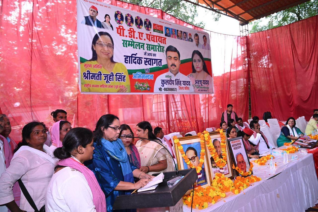 लखनऊ। पीडीए पंचायत का आयोजन समाजवादी महिला सभा की राष्ट्रीय सचिव अंजू यादव द्वारा किया गया। सभा का संचालन शुभांगी द्विवेदी ने किया। कार्यक्रम में बड़ी संख्या में महिलाओं ने भाग लिया और समाजवादी पार्टी की नीतियों तथा राष्ट्रीय अध्यक्ष एवं पूर्व मुख्यमंत्री अखिलेश यादव में अपनी आस्था जताते हुए पार्टी की सदस्यता ग्रहण की। इस अवसर पर प्रमुख सदस्य बनीं पूजा गौतम, निर्मला लोधी, मधु कौर, रामू गौतम, रश्मि रावत और सुनीता गौतम। इसके साथ ही किसान यूनियन की कई महिलाओं ने भी समाजवादी पार्टी की सदस्यता ली।