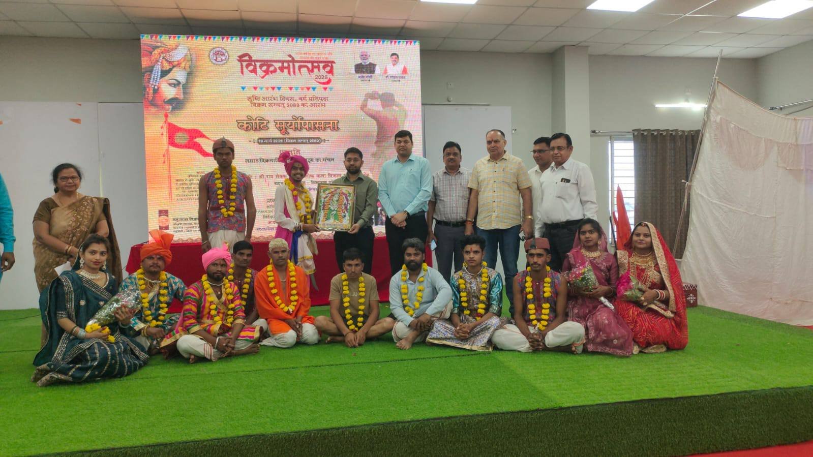 कार्यक्रम का शुभारंभ मुख्य अतिथि कलेक्टर स्वप्निल वानखड़े द्वारा मां सरस्वती के समक्ष दीप प्रज्वलित कर किया गया। भोपाल नाट्य संस्थान से आए कलाकारों ने अपनी प्रभावशाली अभिनय शैली से सम्राट विक्रमादित्य के जीवन की प्रेरणादायक कथाओं को जीवंत रूप में प्रस्तुत किया, जिसे दर्शकों ने खूब सराहा और पूरा हॉल तालियों की गड़गड़ाहट से गूंज उठा।