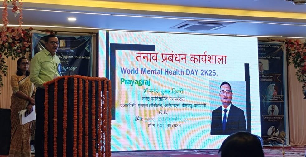वाराणसी। विश्व मानसिक स्वास्थ्य दिवस 10 अक्टूबर 2025 के अवसर पर प्रयागराज स्थित अस्तित्व साइकोलॉजिकल काउंसलिंग सेंटर द्वारा एक सेमिनार का आयोजन किया गया। इस सेमिनार का थीम था: “मन मायने रखता है: आओ बात करके ठीक करें”।