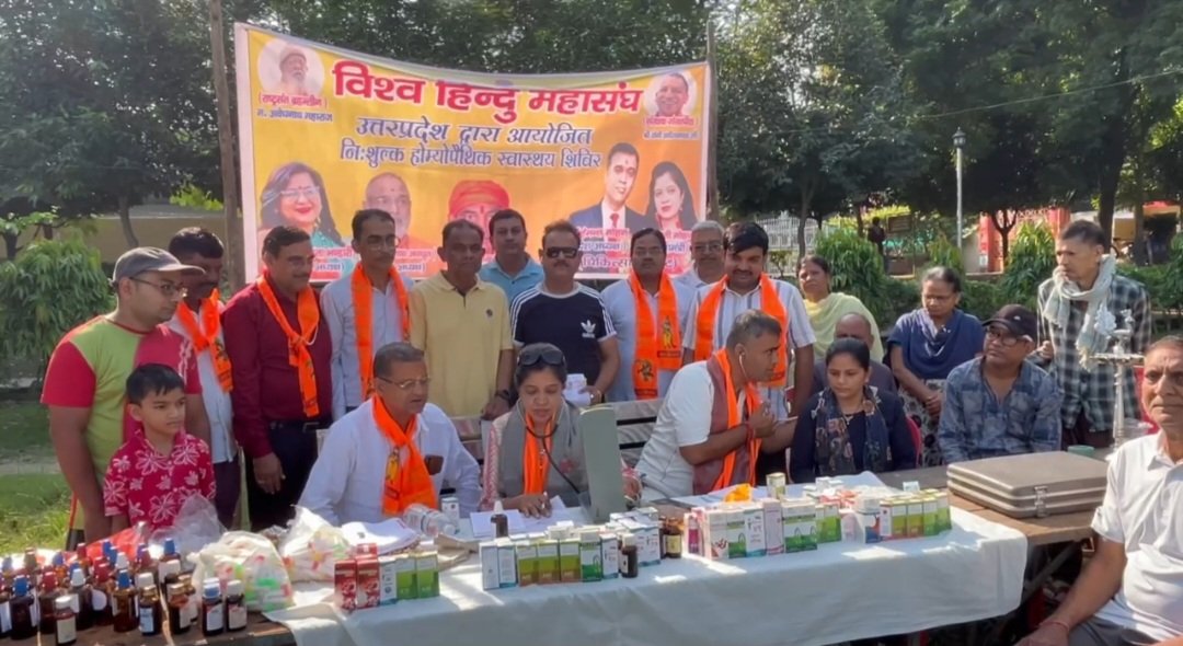 कानपुर नगर। बदलते मौसम में लोगों को स्वास्थ्य के प्रति जागरूक करने के उद्देश्य से विश्व हिंदू महासंघ उत्तर प्रदेश की ओर से रविवार को आर्य नगर स्थित परशुराम वाटिका में निशुल्क होम्योपैथिक स्वास्थ्य मेले का आयोजन किया गया।