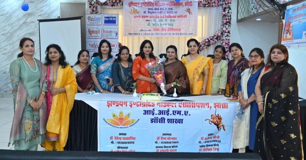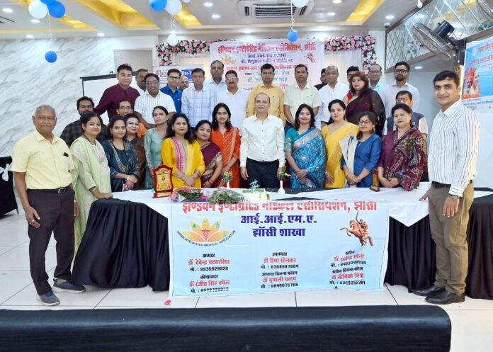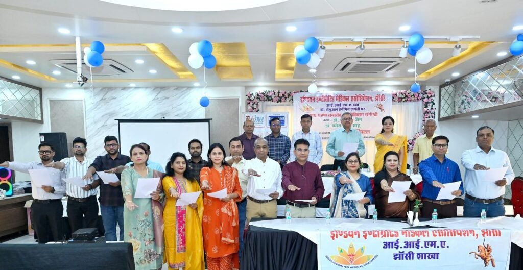 झांसी। विश्व होम्योपैथी दिवस के उपलक्ष्य में इण्डियन इंटीग्रेटेड मेडिकल एसोसिएशन (आई.आई.एम.ए.), झांसी की सत्र 2026-27 हेतु नवगठित कार्यकारिणी का शपथ ग्रहण समारोह, केक सेरेमनी एवं चिकित्सा संगोष्ठी का आयोजन डॉ. देवेन्द्र पटसारिया की अध्यक्षता में एवं मुख्य चिकित्सा अधिकारी डॉ. सुधाकर पाण्डेय के मुख्य आतिथ्य में तथा अपर मुख्य चिकित्सा अधिकारी डॉ. एन.के. जैन के विशिष्ट आतिथ्य में स्थानीय होटल में किया गया।