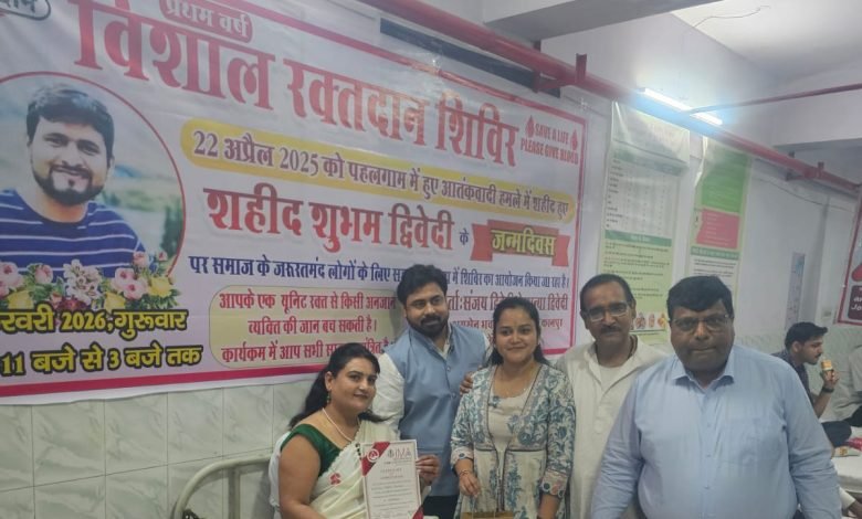 शहीद शुभम द्विवेदी की स्मृति में रक्तदान शिविर, युवाओं ने बढ़-चढ़कर लिया हिस्सा