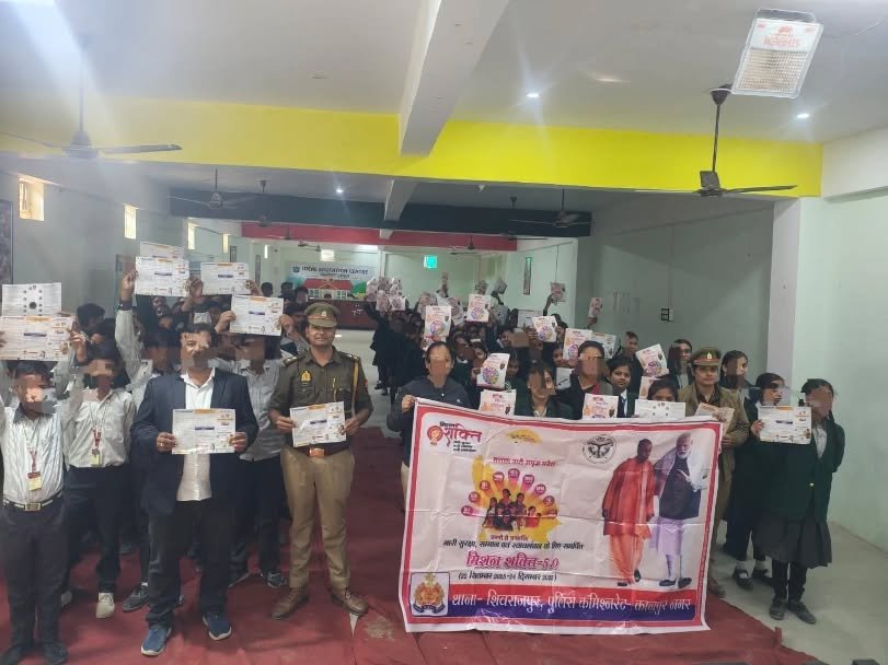 कानपुर नगर। थाना शिवराजपुर की साइबर जागरूकता टीम एवं मिशन शक्ति टीम ने आज आइडियल पब्लिक स्कूल, शिवराजपुर में छात्रों और स्टाफ को साइबर अपराध एवं नए कानूनों के बारे में जागरूक किया। टीम ने कार्यक्रम के दौरान साइबर सुरक्षा से जुड़े महत्वपूर्ण बिंदुओं पर विस्तार से जानकारी दी और सतर्क रहने की अपील की।