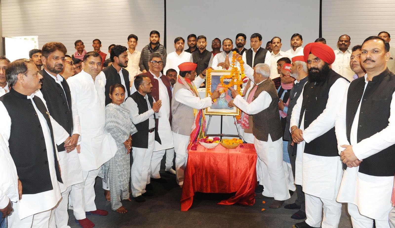 स्वच्छता अभियान के प्रणेता और सामाजिक समरसता के प्रतीक संत गाडगे महाराज की जयंती आज राजधानी लखनऊ स्थित समाजवादी पार्टी कार्यालय सहित प्रदेश के सभी जनपदों में सादगी के साथ मनाई गई। पार्टी कार्यालय में संत गाडगे महाराज के चित्र पर राष्ट्रीय अध्यक्ष अखिलेश यादव की ओर से राष्ट्रीय सचिव एवं पूर्व कैबिनेट मंत्री राजेंद्र चौधरी ने माल्यार्पण कर श्रद्धांजलि अर्पित की। इस अवसर पर प्रदेश अध्यक्ष श्याम लाल पाल और पूर्व सांसद अरविंद कुमार सिंह ने भी पुष्पांजलि अर्पित कर नमन किया।