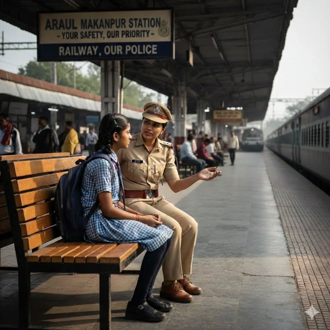 कानपुर नगर। दिनांक 13 दिसंबर 2025 को एंटी रोमियो ड्यूटी के दौरान थाना अरौल क्षेत्र अंतर्गत मकनपुर रेलवे स्टेशन पर एक लगभग 10 वर्षीय नाबालिग बच्ची स्कूल ड्रेस में अकेली बैठी हुई पाई गई। बच्ची से पूछताछ करने पर वह स्टेशन पर अकेले होने का कोई स्पष्ट कारण नहीं बता सकी।