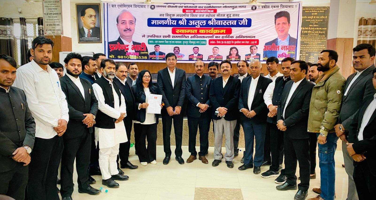 कार्यक्रम में बार अध्यक्ष प्रमेन्द्र भाटी एडवोकेट, सचिव अजीत नागर, एल्डर कमेटी के चेयरमैन ब्रह्म सिंह नागर एडवोकेट, एडवोकेट राम शरण नागर (राष्ट्रीय उपाध्यक्ष, समाजवादी अधिवक्ता सभा) सहित सैकड़ों सम्मानित अधिवक्ता उपस्थित रहे।