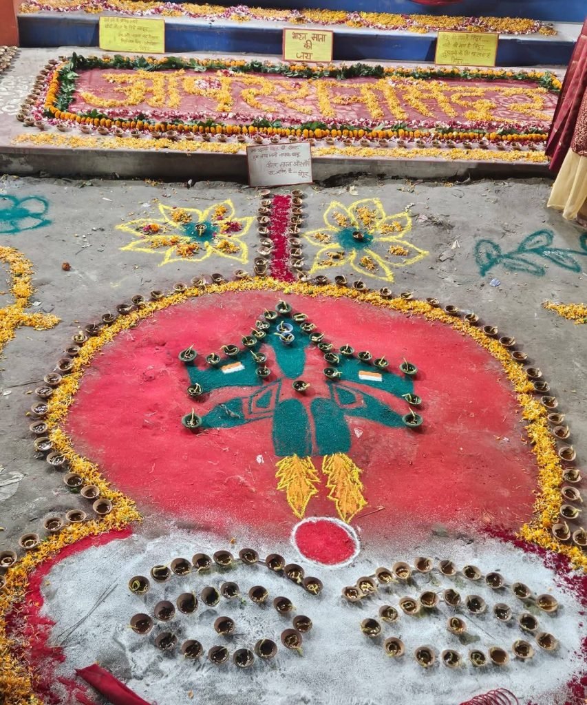 सरसैया घाट पर महिलाओं और छात्राओं ने रंगोली बनाकर वीर बलिदानियों को श्रद्धांजलि दी। जिलाधिकारी जितेंद्र प्रताप सिंह ने अपनी पत्नी रश्मि सिंह के साथ दीपदान किया और रंगोली बनाने वाली छात्राओं को सम्मानित किया। समिति के महामंत्री प्रवीण कुमार शुक्ला और उपाध्यक्ष आशीष पांडेय समेत अन्य प्रमुख सदस्य भी उपस्थित थे।