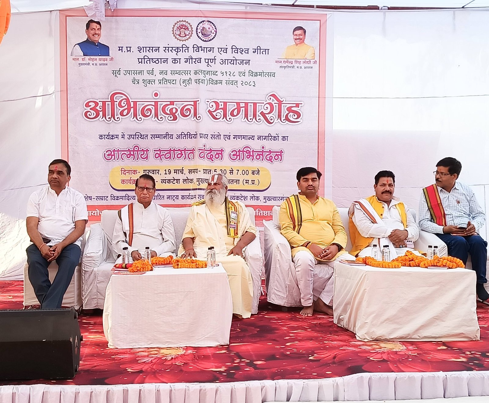 कार्यक्रम के मुख्य वक्ता पूज्य श्री श्री 108 श्री धारणीधराचार्य महाराज (बड़ा अखाड़ा, सोहावल) ने अपने उद्बोधन में भारतीय संस्कृति में सूर्य उपासना के महत्व पर विस्तार से प्रकाश डाला। उन्होंने कहा कि सूर्य उपासना ऊर्जा, सकारात्मकता और जीवन में अनुशासन व समर्पण की भावना का प्रतीक है। साथ ही नव संवत्सर के आध्यात्मिक और सामाजिक महत्व को भी उन्होंने विस्तार से समझाया।