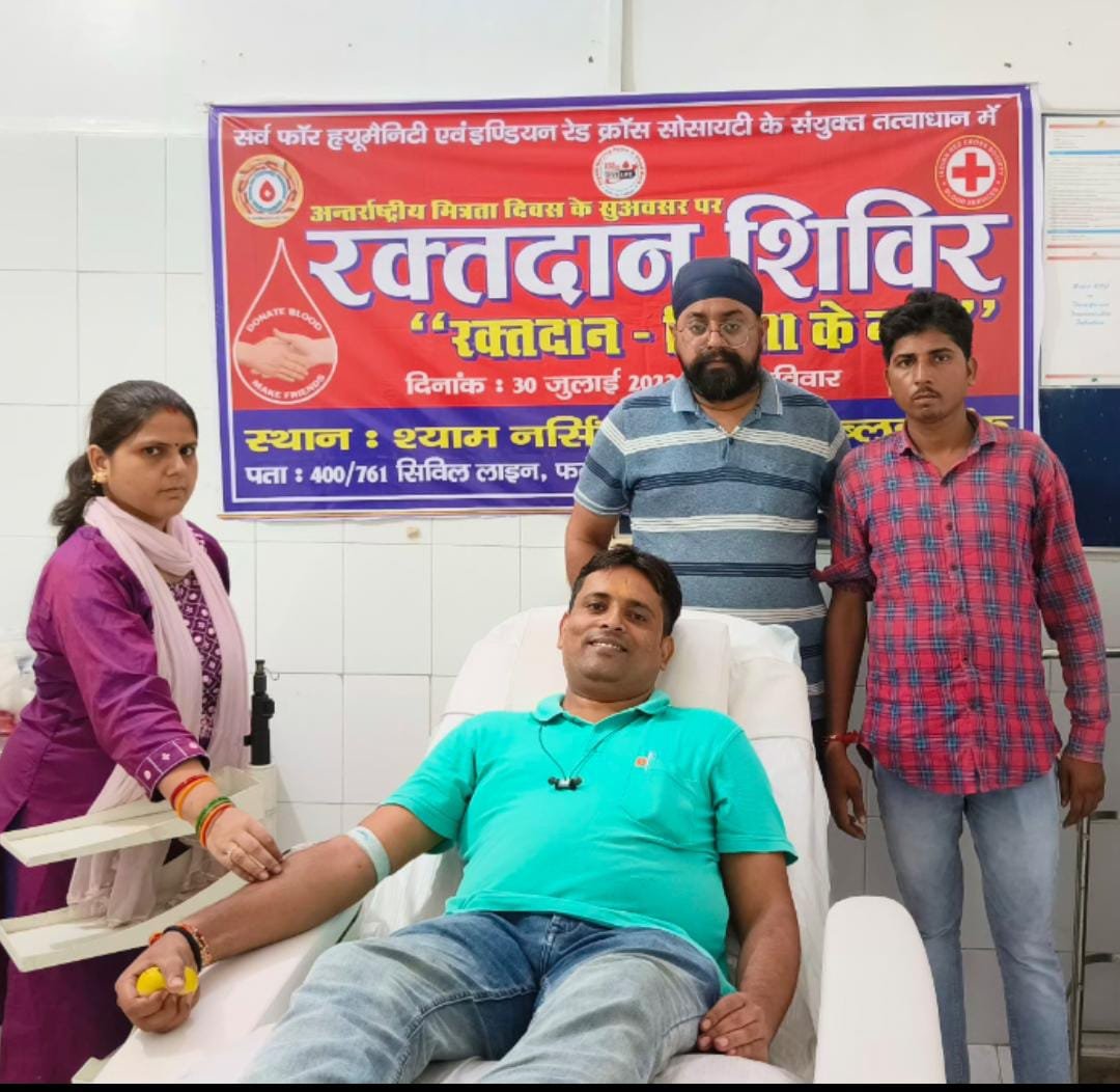 सर्व फार ह्यूमैनिटी टीम की सेवा भाव को देखते हुए बच्चे के पिता सचिन ने अपना रक्तदान किया। जिससे समय पर किसी जरूरतमंद को रक्त की उपलब्धता हो सके। वही जन्माष्ठमी के शुभ अवसर पर ग्राम मंसूरपुर पोस्ट बेरा गढ़ीवा निवासी परीक्षित यादव जिले में चल रही रक्त की कमी के चलते अपना आठवा रक्तदान मानस रक्तकेन्द्र में किया और कहा हम सभी को जन्मदिन, त्योहारों व शुभ अवसरो में रक्तदान करना चाहिए ताकि किसी की जान रक्त की कमी से न जाये। इस मौके पर टीम से गुरमीत सिंह ,श्याम रक्तकेन्द्र से प्रवीण प्रसून,कंचन व मानस रक्तकेन्द्र से अमन उपस्थित रहे।