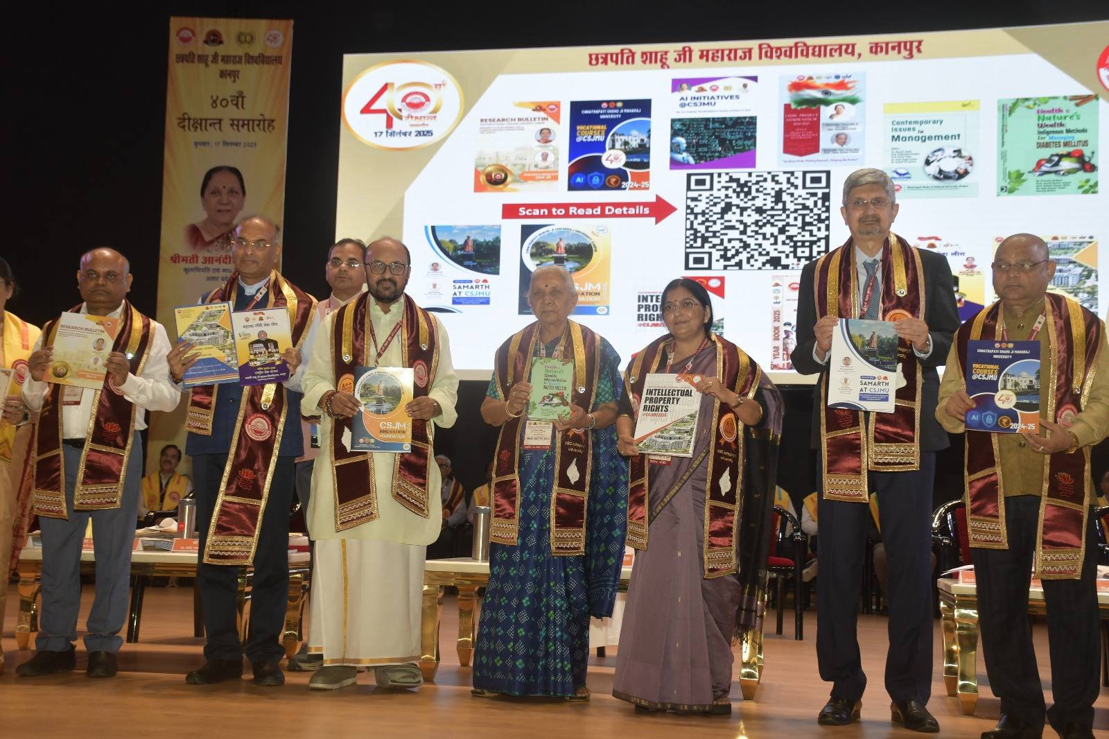 कानपुर नगर। वीरांगना रानी लक्ष्मीबाई सभागार में छत्रपति शाहूजी महाराज विश्वविद्यालय का 40वां दीक्षांत समारोह प्रदेश की राज्यपाल एवं कुलाधिपति आनंदीबेन पटेल की अध्यक्षता में सम्पन्न हुआ। इस अवसर पर प्रधानमंत्री नरेंद्र मोदी के “स्वस्थ नारी, सशक्त परिवार” एवं राष्ट्रीय पोषण माह अभियान पर दिए गए भाषण का सीधा प्रसारण भी किया गया।