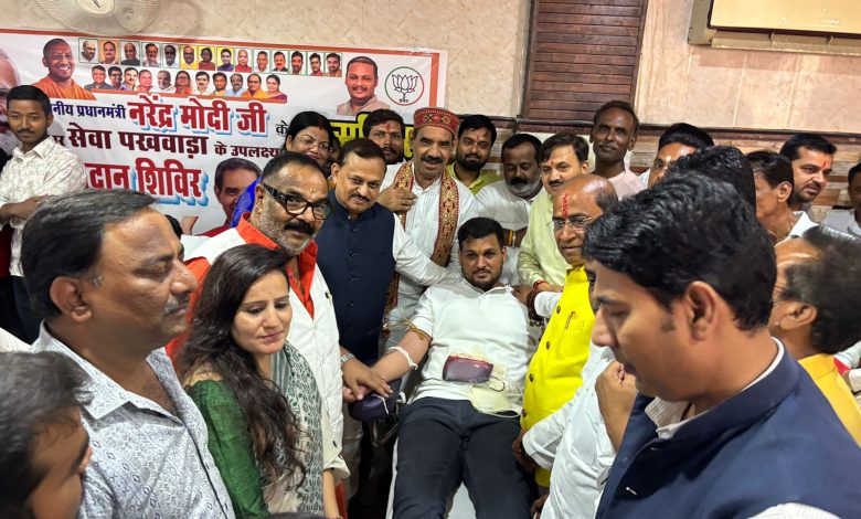 कानपुर नगर। भारत के यशस्वी प्रधानमंत्री नरेंद्र मोदी के 75वें जन्मदिन के उपलक्ष्य में भारतीय जनता युवा मोर्चा (भाजयुमो) ने सेवा भाव को केंद्र में रखते हुए विशेष आयोजन किया। जिला अध्यक्ष शिवांग मिश्रा के नेतृत्व में अशोक नगर स्थित लक्ष्मी पैलेस में एक विशाल रक्तदान शिविर का आयोजन किया गया, जिसमें बड़ी संख्या में कार्यकर्ताओं और युवाओं ने भाग लिया।